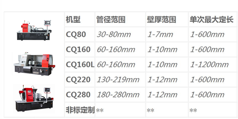 設(shè)備加工范圍:多個(gè)機(jī)型適合管徑30-80、60-160(CQ160-C型)、130-219、180-280mm標(biāo)準(zhǔn)管徑范圍,最厚切20mm或非標(biāo)定制