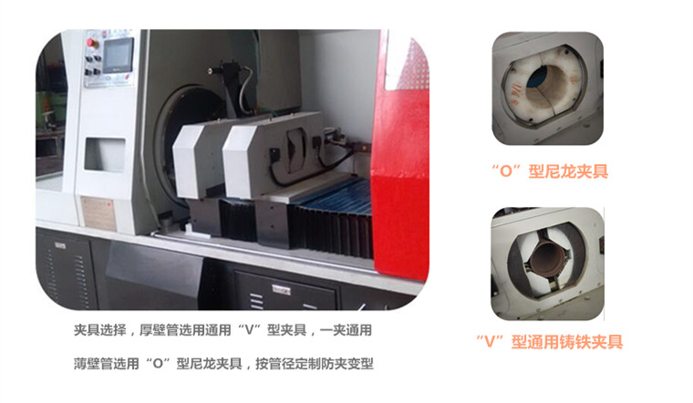 7、托輥管通常壁厚在3mm以上,針對這來管件切斷采用V型通用夾個,一夾通用不需換夾具。
