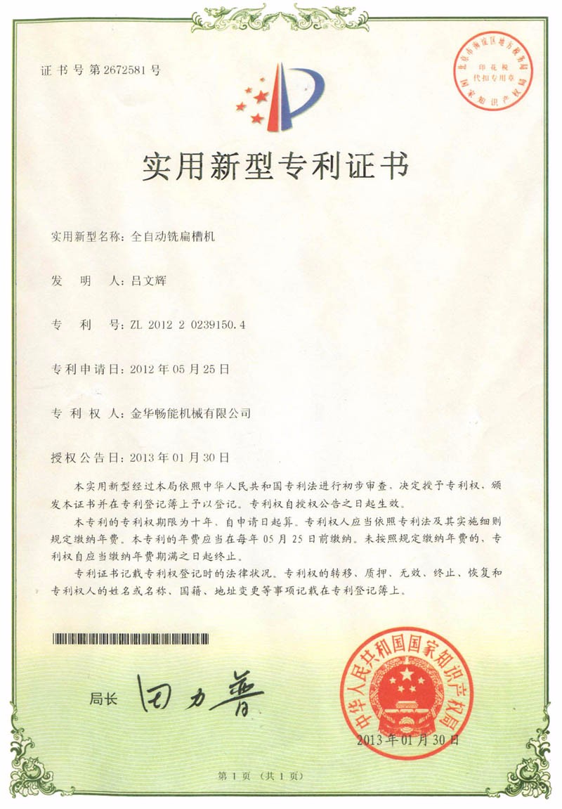 名稱: 實用新專利全自動銑扁槽