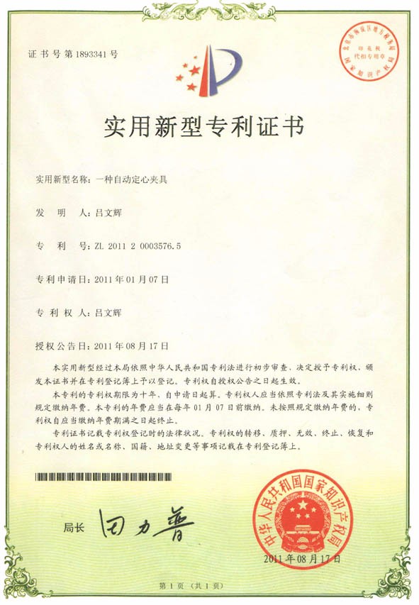 名稱: 新型專利自定心夾具
