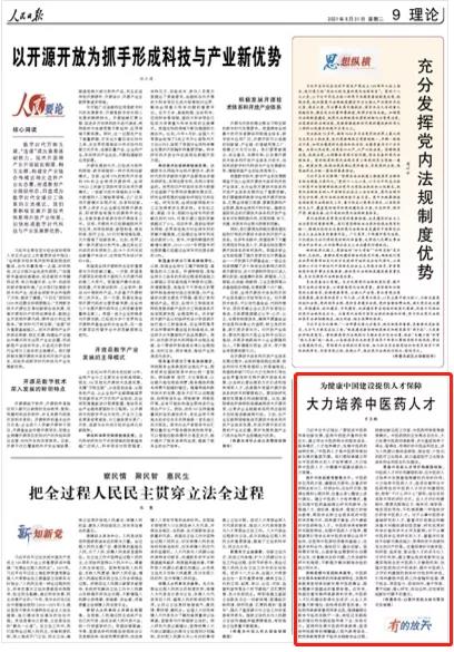 人民日報:大力培養(yǎng)中醫(yī)藥人才